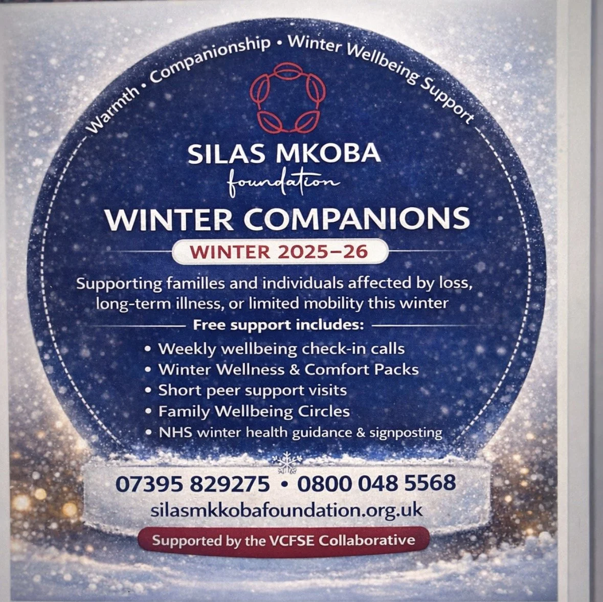 Winter Companions is a seasonal winter pressure relief programme delivered by the Silas Mkoba Foundation to support individuals and families during the colder months.